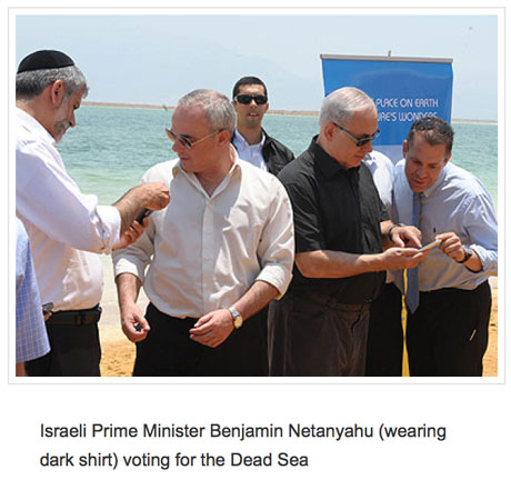 Thủ tướng Israel Benjamin Netanyahu bầu chọn cho Biển Chết (Ảnh ông Hoàng cung cấp)