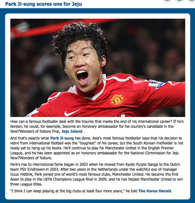 Ngôi sao Park Ji Sung vận động bầu chọn cho đảo Jeju