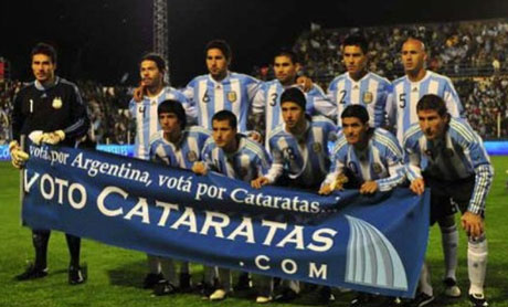 Ông Hoàng đưa ra dẫn chứng rất nhiều nhân vật nổi tiếng trên thế giới tham gia chiến dịch bầu chọn top 7 Kỳ quan Thiên nhiên Thế giới mới: trong ảnh là đội tuyển bóng đá quốc gia Achentina của HLV Diego Maradona vận động bầu chọn trước trận đấu